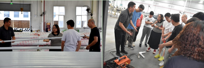 在蘇副總、何總及設(shè)計總監(jiān)付曉娟的帶領(lǐng)下,一起從產(chǎn)品原料--擠出--復合--包裝--連接等方面進行了全方位的講解和現(xiàn)場實驗,讓各位zhuan家能夠?qū)嶋H的去感受科技的力量,更直接的能體會到陜西興紀龍管道股份有限公司在產(chǎn)品的生產(chǎn)、研發(fā)及品質(zhì)管控等各個方面的認真、執(zhí)著及科學嚴謹?shù)膽B(tài)度。