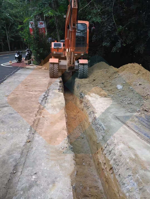 5、人工開挖管槽時(shí),要求溝槽底部平整、密實(shí),無尖銳物體。溝底可以有起伏,但必須平滑地支撐管材,若有超挖時(shí),回填夯實(shí)。